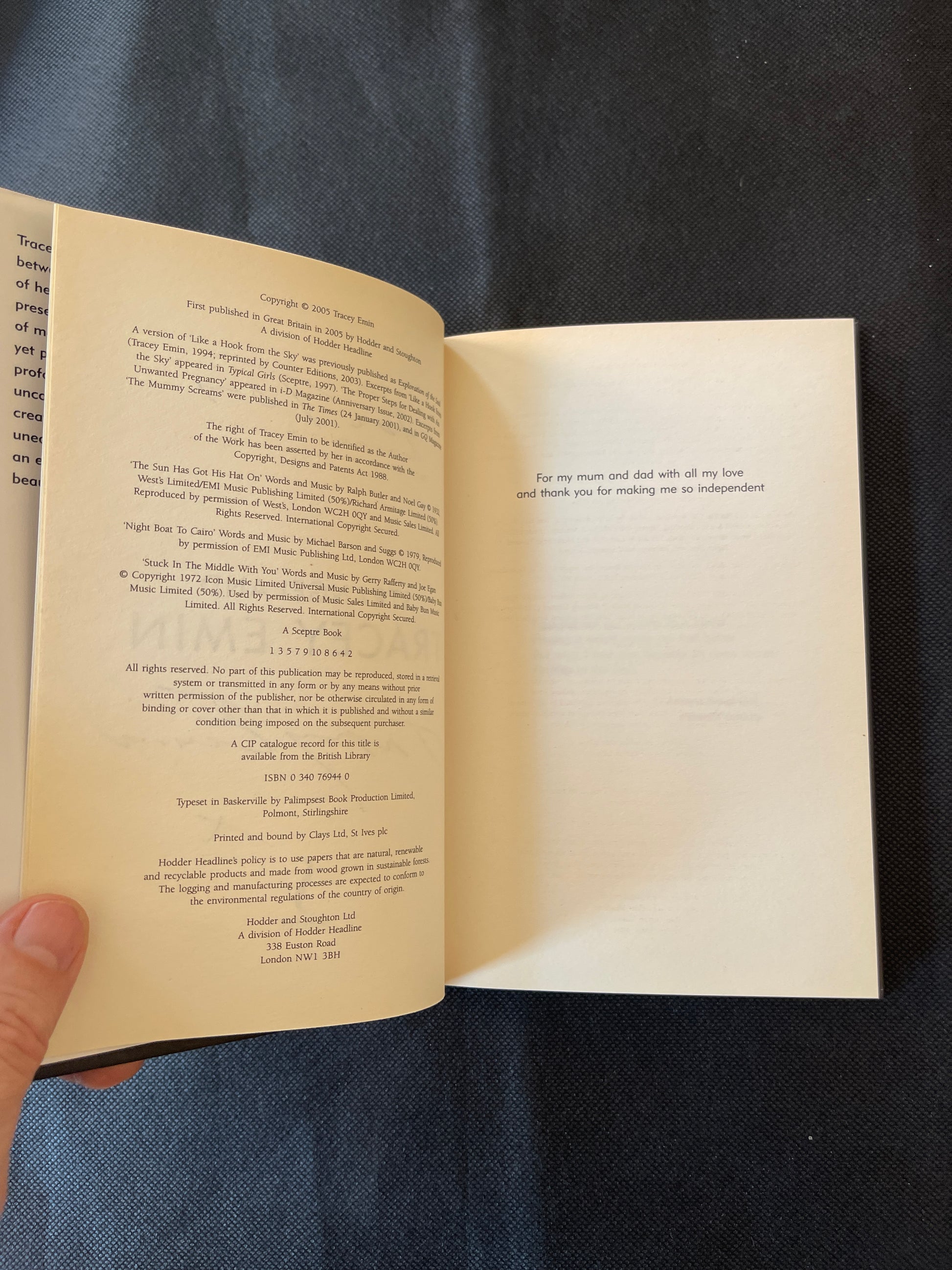 Hand signed, dated 2005 and inscribed "for Ann" by Tracey Emin on the title page